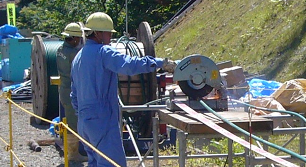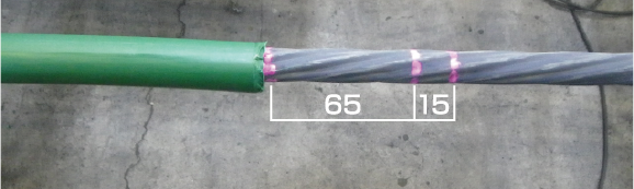 - ③フロボンドにシース切断位置、止水チューブ取付位置、ビニールテープ巻き位置の3箇所にマーキングする。