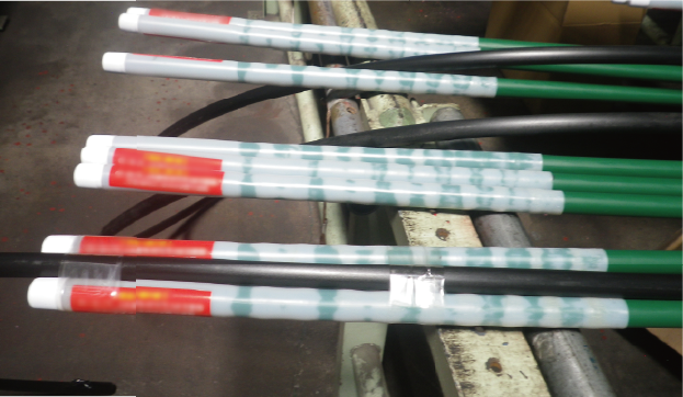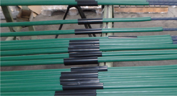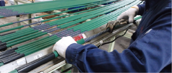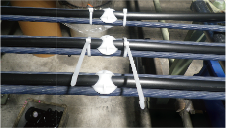 アンカー体長部スペーサーを1.5m以内の間隔で、SFL-1の場合はフロボンドに、SFL-2~12は注入ホースに通す。アンカー体長部スペーサーの両端をインシュロックタイで結束する。