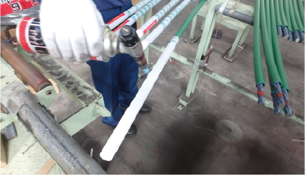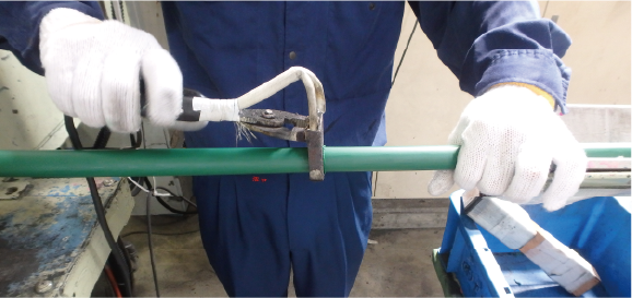- ②止水チューブを所定の位置に配置し、熱収縮装置を被せて収縮加工する。
