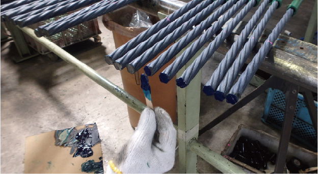 補修用塗料をアンカー体の先端部側の切断部に塗布する。