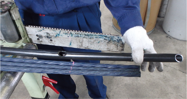 - ①注入ホースをテンドン長+1.0mの長さに切断する。