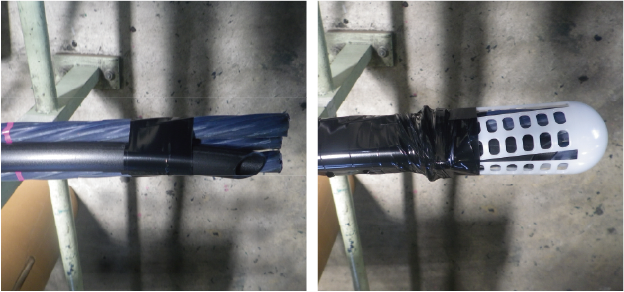 - ②グラウト防止キャップ端部をビニールテープで養生する。